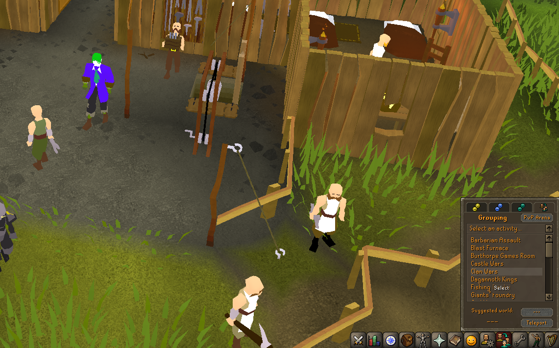 To use a minigame teleport, open the Group and Clan tab in the interface. This is the icon that looks like two small faces. On the far right side of that tab, you will see the Minigame Teleports button. Clicking it opens the full list of available minigame teleports.